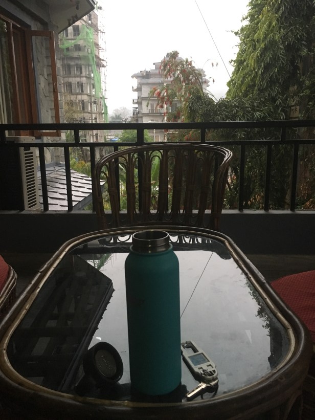 I sit here in this rainy Wednesday afternoon watching the tea steam out of my insulated water bottle. The rain has stopped a hiking adventure to the Peace Pagoda, a Pokhara classic, with lovely views of the mountain. Today one can’t even see that there is a lake much less any mountains, so we decided that we’ll hope for Sunday for that adventure.