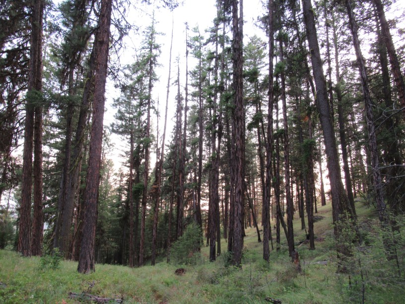 Not eaten, thankfully. The sounds started up again around 4 am – Sasquatch must be crepuscular (active at dawn and dusk). Our trail today was an immaculate and scenic roller coaster, despite the smoke. We made our way from water to water and had stopped for some lunch when T came zooming past, like an Olympic speed walker, calling that Z was just behind him and that to pass on that he was going to start hitching when he hit the highway (into Republic). We assumed that he was going to try to get to the post office before it closed for the day and waited expectantly for Z to come through. Fifteen minutes later Z came wandering in, as casually as if he was out for a Sunday stroll, and stopped and chatted for a bit before leisurely strolling on. Those two couldn’t be a funnier duo!
